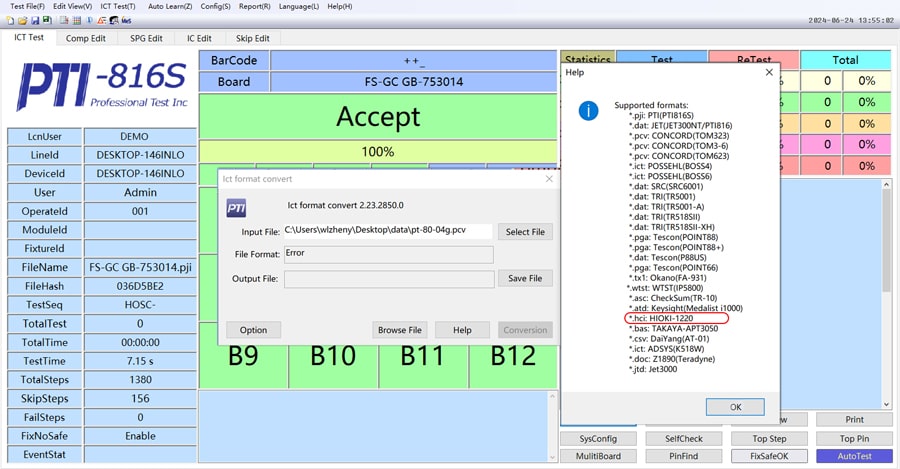為了實(shí)現(xiàn) HIOKI 1220 測(cè)試程序到 PTI816S 的快速轉(zhuǎn)換,我們開發(fā)了專門的程序轉(zhuǎn)換工具。該工具能夠讀取 HIOKI 1220 的程序文件,并根據(jù) PTI816S 的編程規(guī)范和語(yǔ)法要求,自動(dòng)將原程序中的測(cè)試步驟、參數(shù)設(shè)置、信號(hào)定義等內(nèi)容進(jìn)行轉(zhuǎn)換和優(yōu)化,生成適用于 PTI816S 的測(cè)試程序。